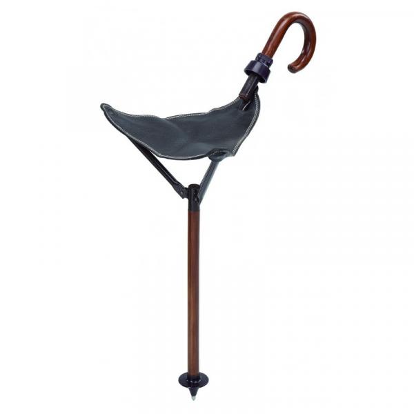 Zusammengeklappt lässt sich der Sitzstock mühelos transportieren und gleichzeitig als stabiler Gehstock verwenden. Mit einer Sitzhöhe von 50 cm bietet er eine ergonomische Sitzposition, während der Bodenteller mit Spitze sicheren Stand auf unterschiedlichstem Gelände gewährleistet. Der praktische Ledertrageriemen erleichtert zudem den Transport.